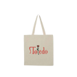 100% heavy cotton canvas tote bag featuring a Toledo logo with a rose.